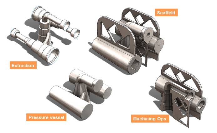 通过雷尼绍的AfAM设计平台,软件计算提取的管道所需要承担的压力要求,然后决定增材制造的加工方向,并且增加管路之间的连接结构为管路成为一个整体提供有效支撑,并且在增材制造过程中实现支撑目的。最后来决定那些需要通过机加工进一步车削来实现精确的接口的部分。